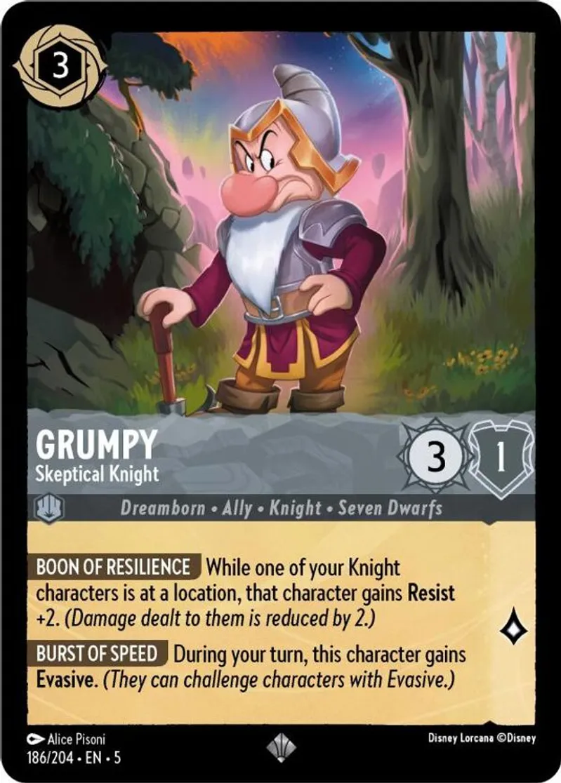 Grumpy - Skeptical Knight is a super rare in the set Shimmering Skies.