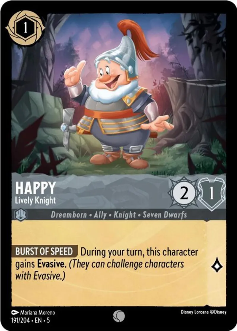 Disney Lorcana (lorcana) common Snow White Happy - Lively Knight from Shimmering Skies (5) last updated 2025-12-15 15:14:01