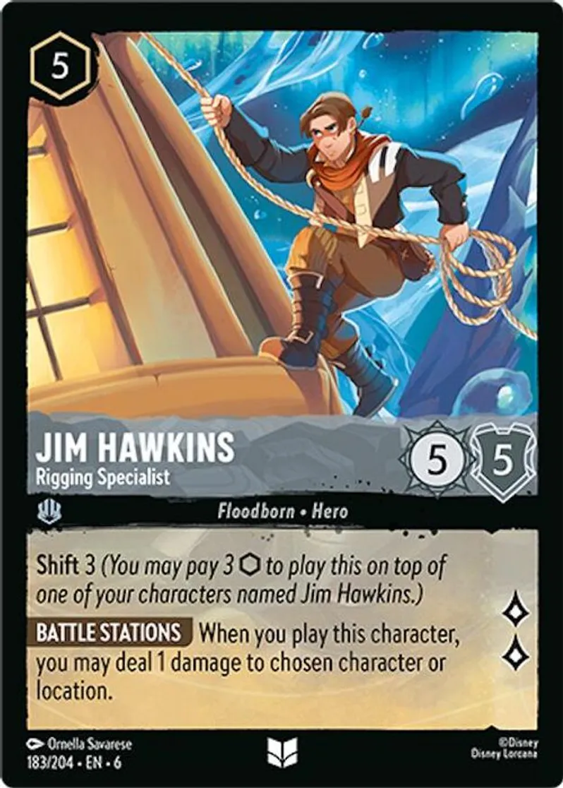 | Oracle Text | Shift 3 (You may pay 3 Ink to play this on top of one of your characters named Jim Hawkins.) [Battle Stations] When you play this character, you may deal 1 damage to chosen character or location. | ||