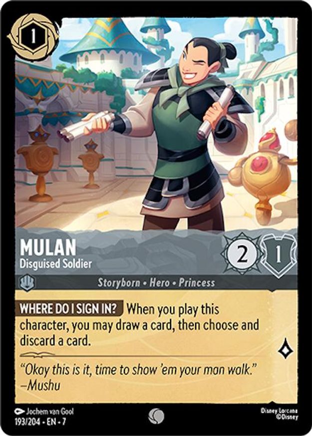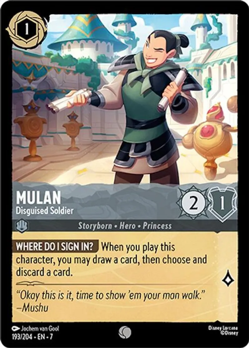 Mulan - Disguised Soldier is a common in the set Archazia’s Island.