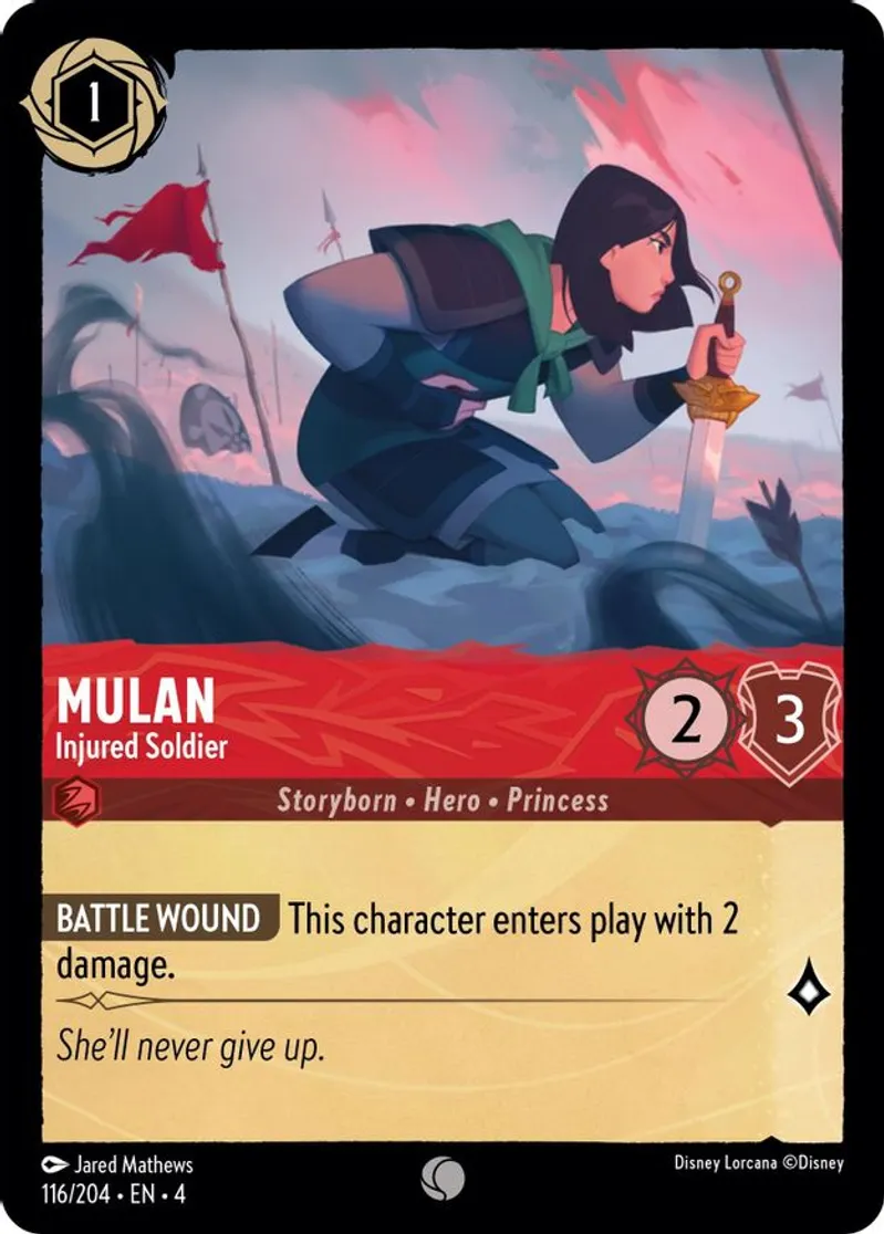 Disney Lorcana (lorcana) common Mulan Mulan - Injured Soldier from Ursula's Return (4) last updated 2025-12-13 15:24:32
