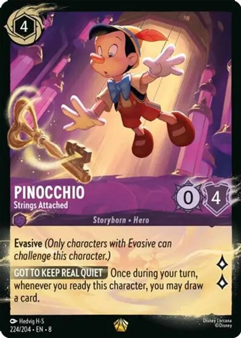 Disney Lorcana (lorcana) legendary Pinocchio Pinocchio - Strings Attached from Illumineer's Quest: Palace Heist (Q2) last updated 2025-12-10 14:50:02