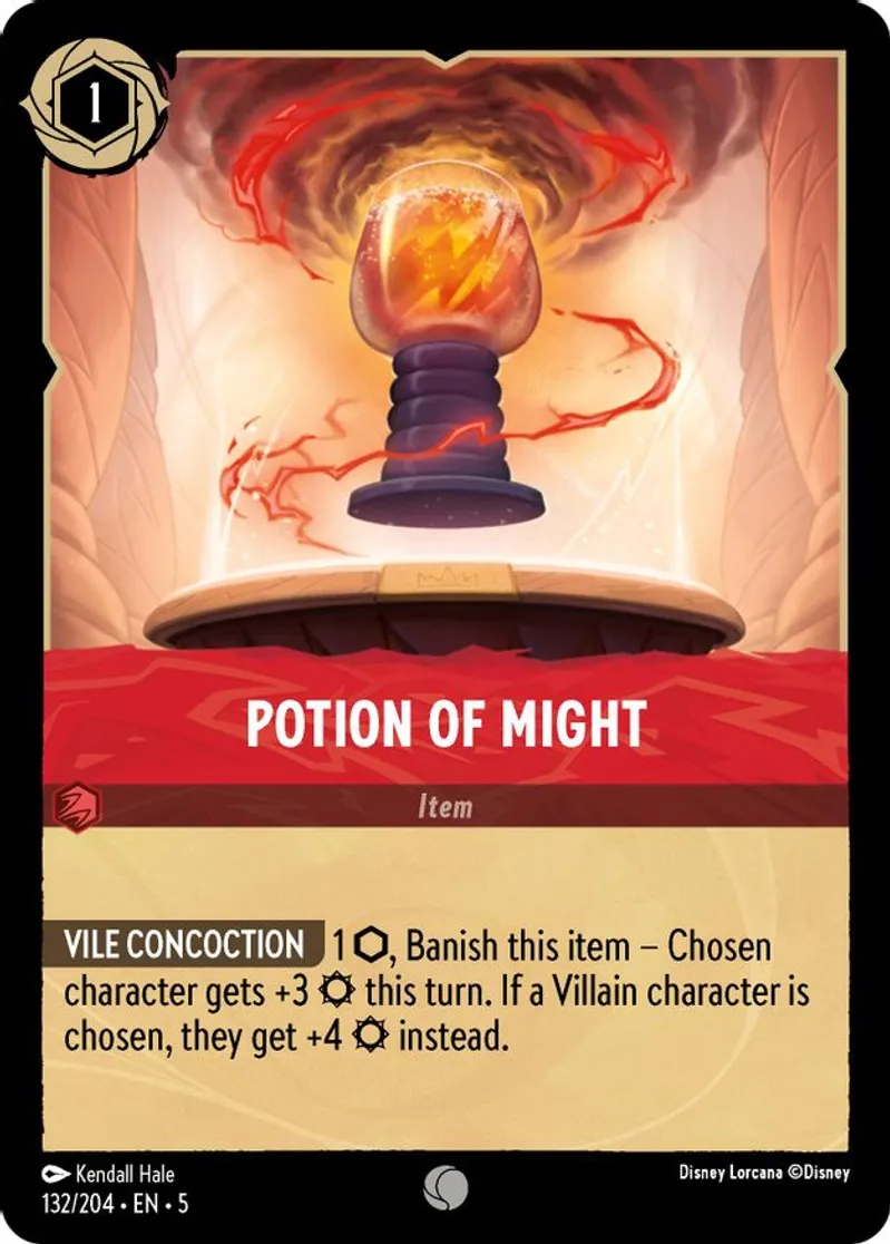 | Oracle Text | [Vile Concoction] 1 Ink, Banish this item — Chosen character gets +3 Strength this turn. If a Villain character is chosen, they get +4 Strength instead. | ||