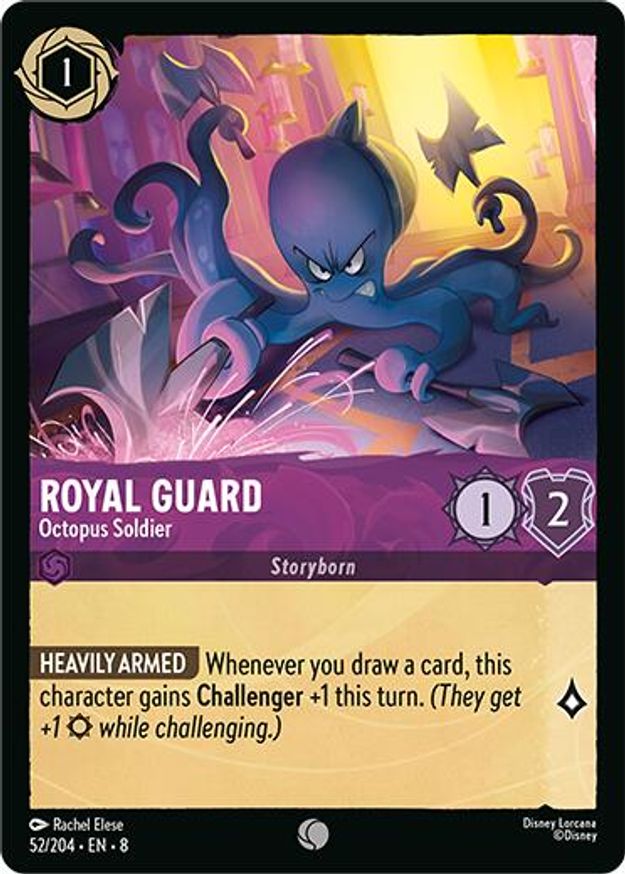 | Oracle Text | [Heavily Armed] Whenever you draw a card, this character gains Challenger +1 this turn. (They get +1 Strength while challenging.) | ||