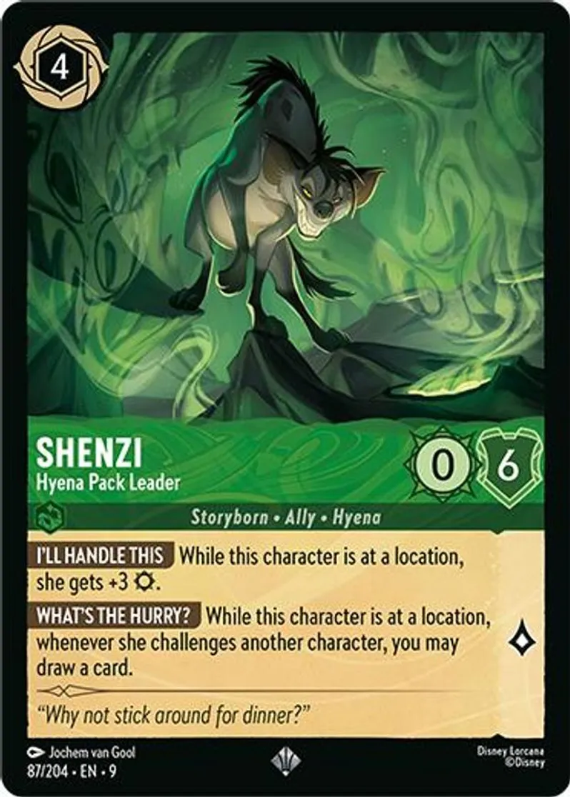 Shenzi - Hyena Pack Leader is a super rare in the set Fabled.