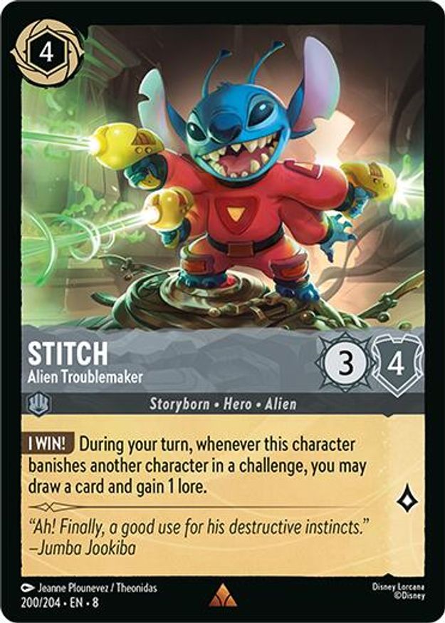 Stitch - Alien Troublemaker is a rare in the set Reign of Jafar.