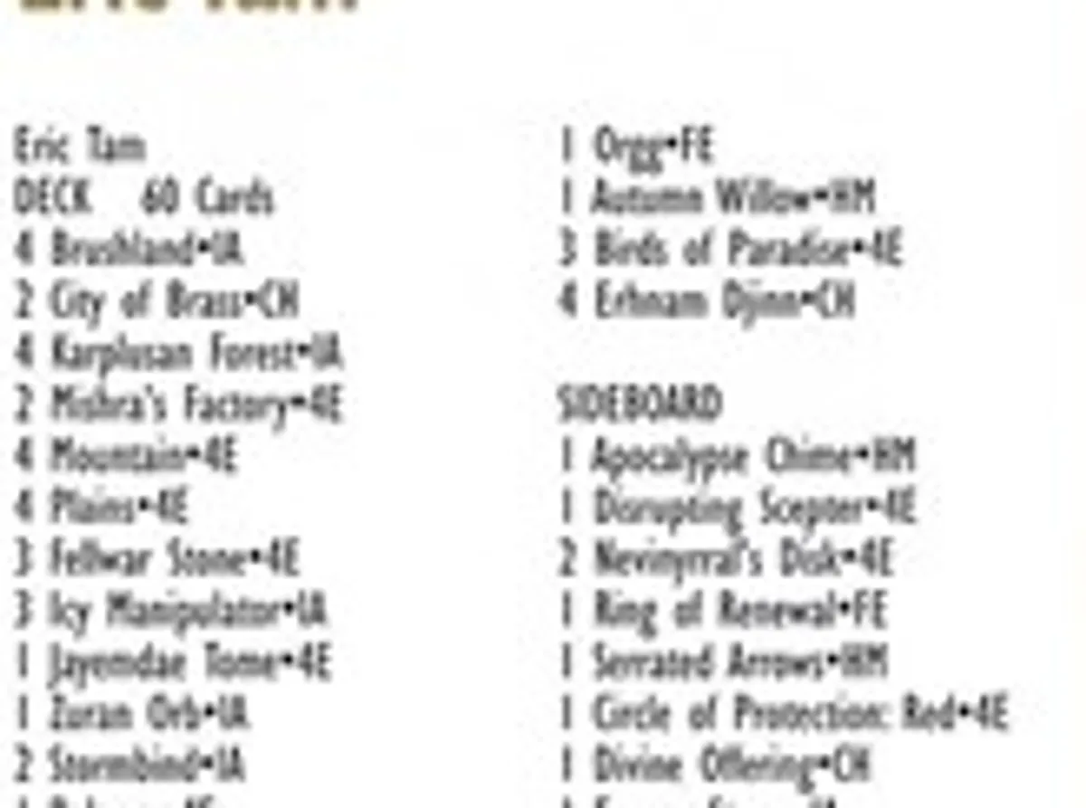 1996 Eric Tam Decklist Card 1 Printing and its Price