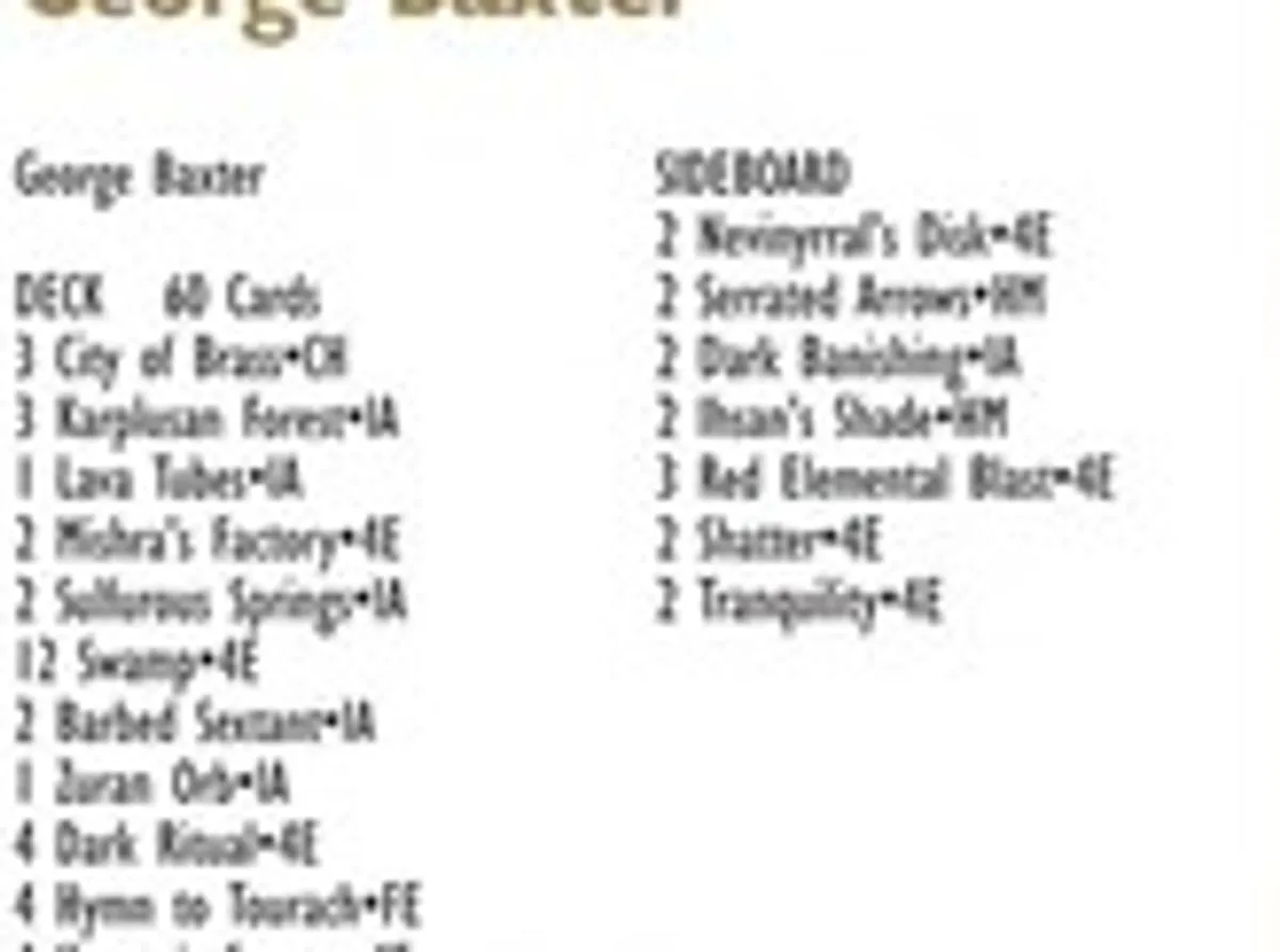 1996 George Baxter Decklist Card 1 Printing and its Price