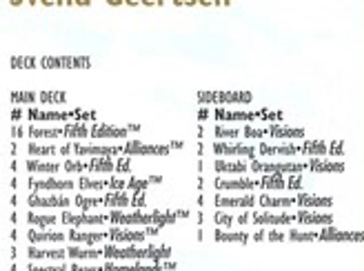 1997 Svend Geertsen Decklist Card 1 Printing and its Price