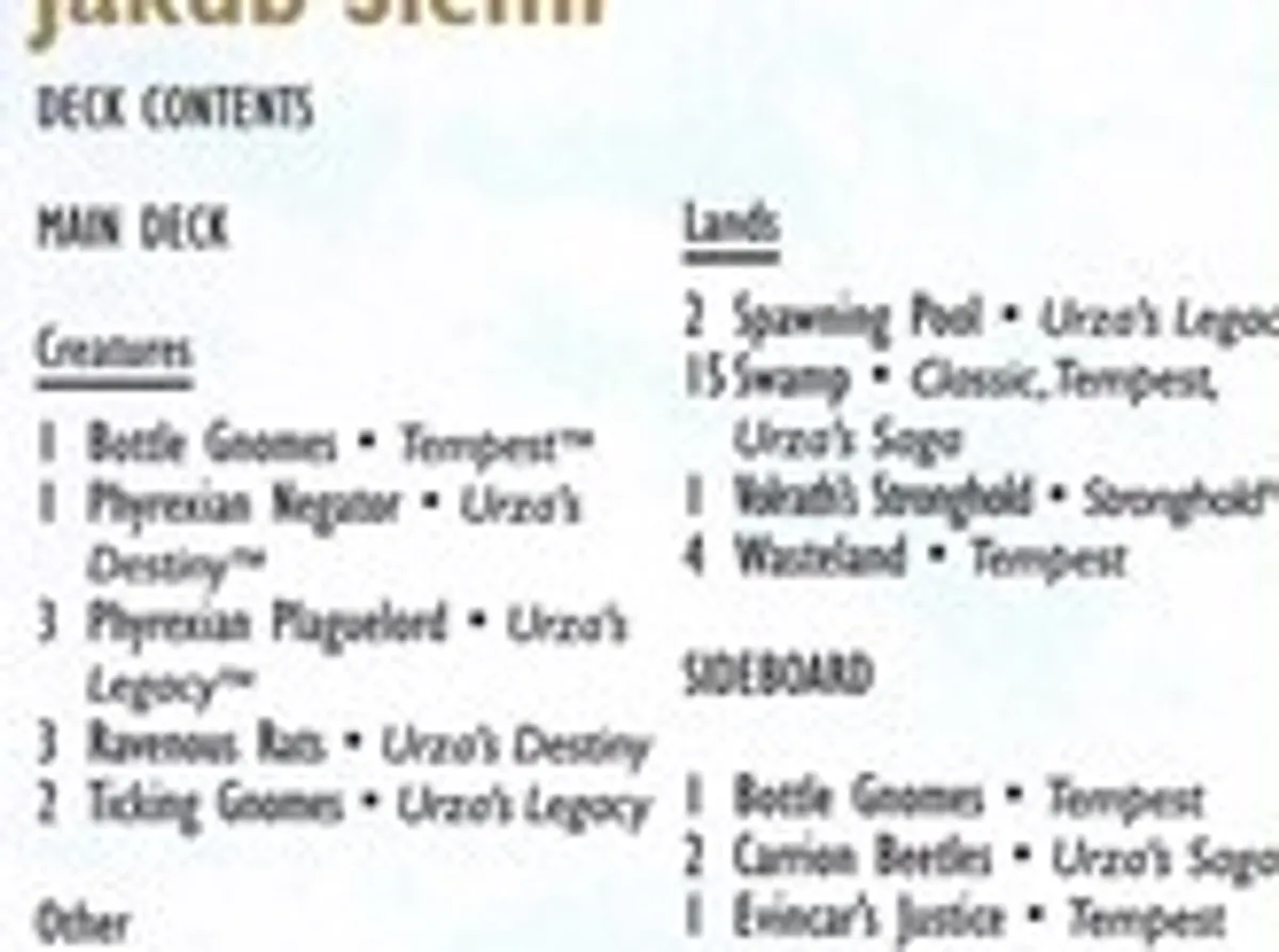 1999 Jakub Slemr Decklist Card 1 Printing and its Price