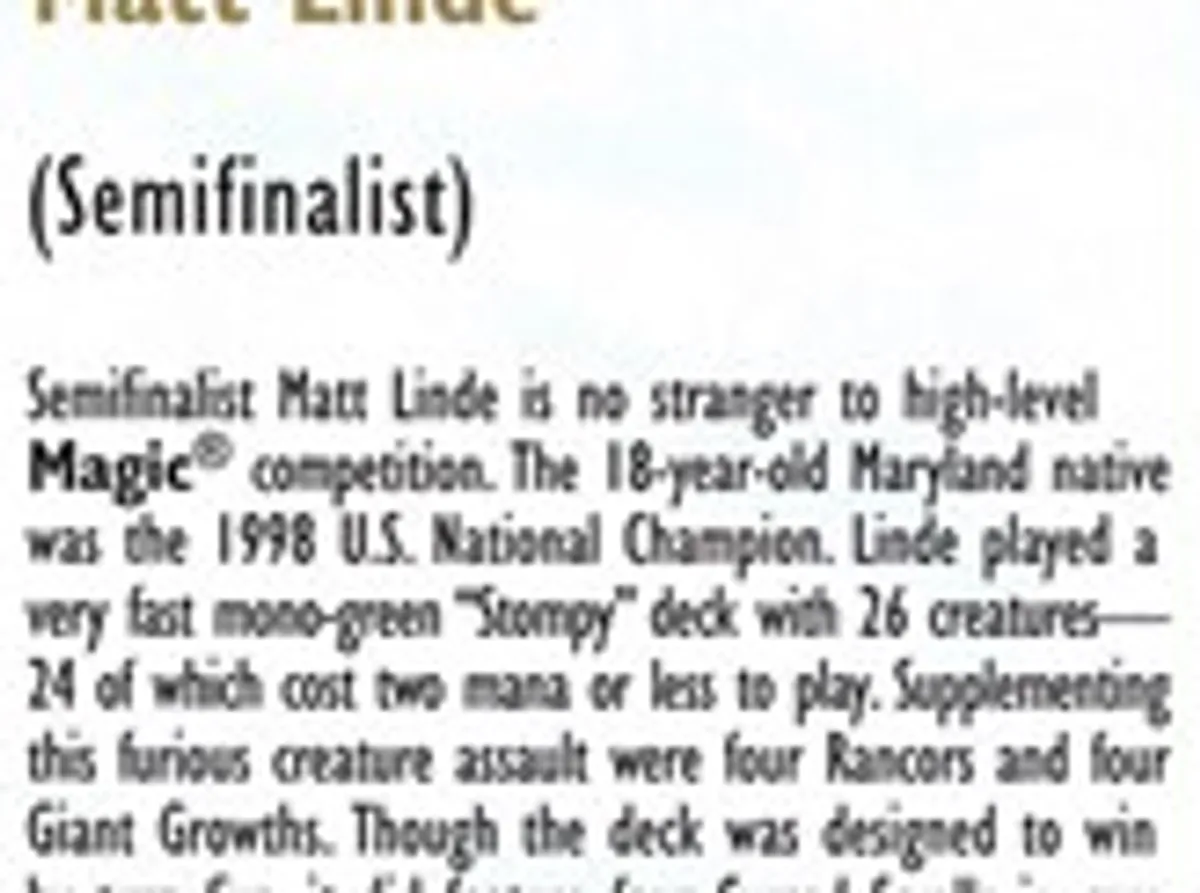 1999 Matt Linde Biography Card 1 Printing and its Price