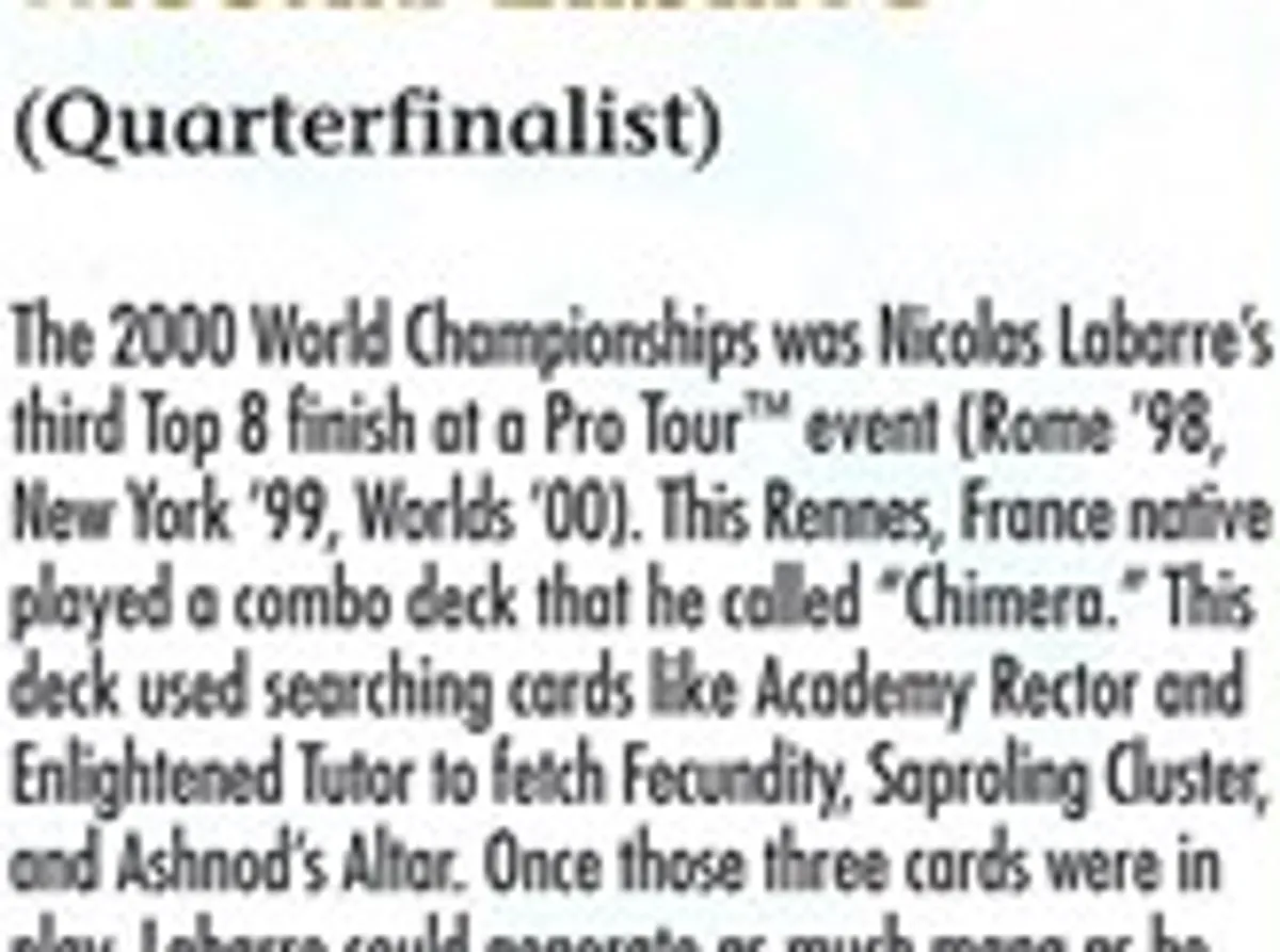 2000 Nicolas Labarre Biography Card 1 Printing and its Price