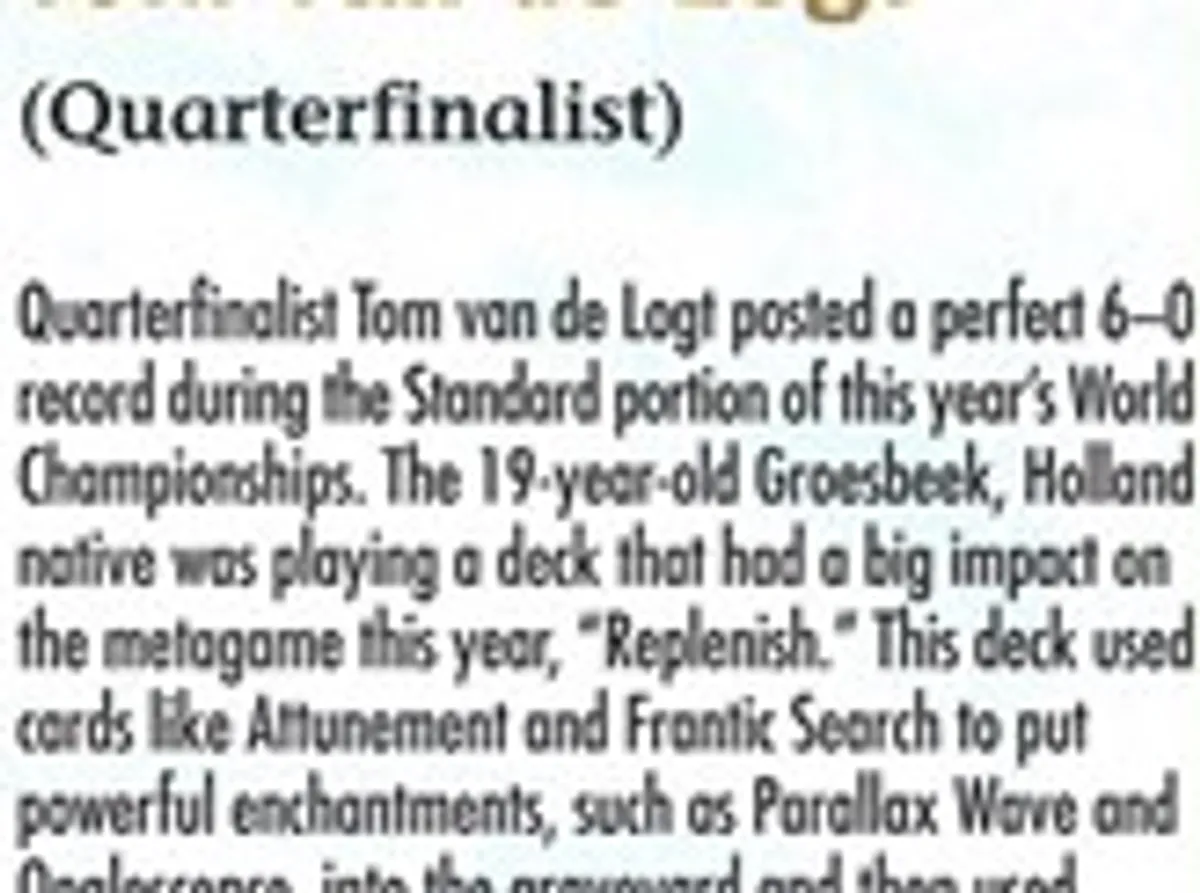 2000 Tom van de Logt Biography Card 1 Printing and its Price