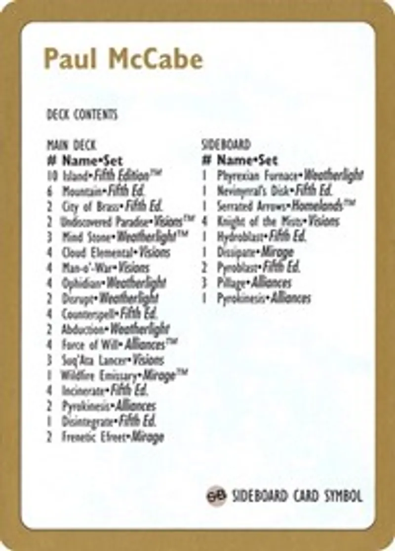 1997 Paul McCabe Decklist Card from World Championship Decks Details