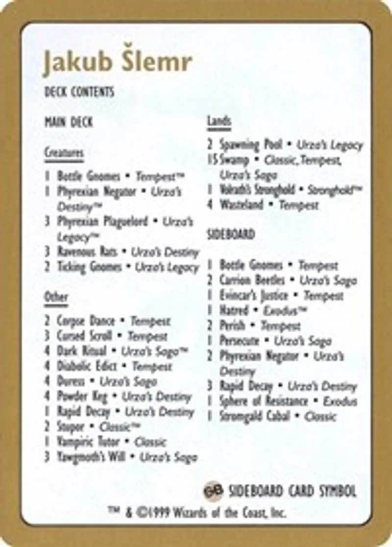 1999 Jakub Slemr Decklist Card is a Token in the set World Championship Decks.