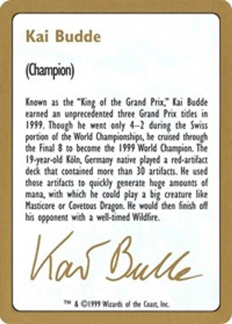 1999 Kai Budde Biography Card is a Token in the set World Championship Decks.