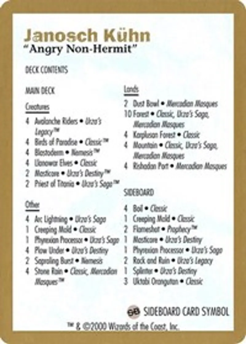 2000 Janosch Kuhn Decklist Card from World Championship Decks Details