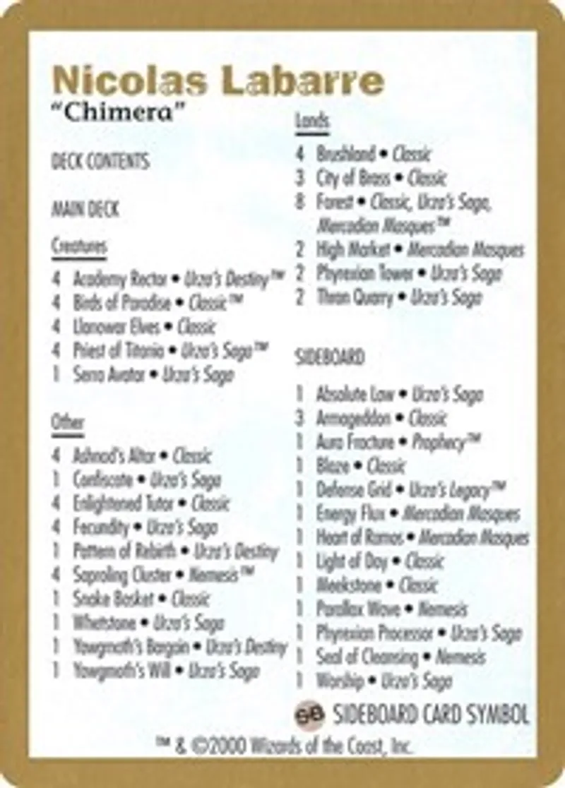 2000 Nicolas Labarre Decklist Card from World Championship Decks Details