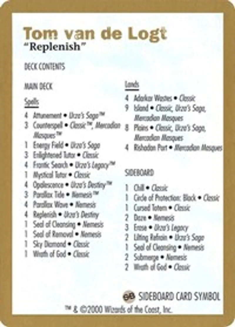 2000 Tom van de Logt Decklist Card from World Championship Decks Details