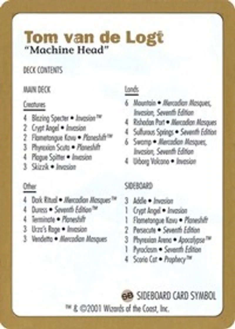 2001 Tom van de Logt Decklist Card from World Championship Decks Details