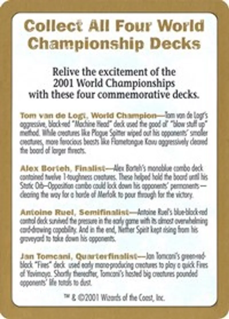 Magic: the Gathering (mtg) Token Token 2001 World Championship Advertisement Card from World Championship Decks (WCD) last updated 2026-02-24 14:30:33