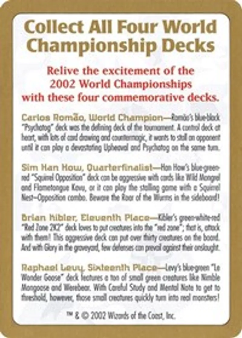 Magic: the Gathering (mtg) Token Token 2002 World Championship Advertisement Card from World Championship Decks (WCD) last updated 2026-02-25 15:28:06