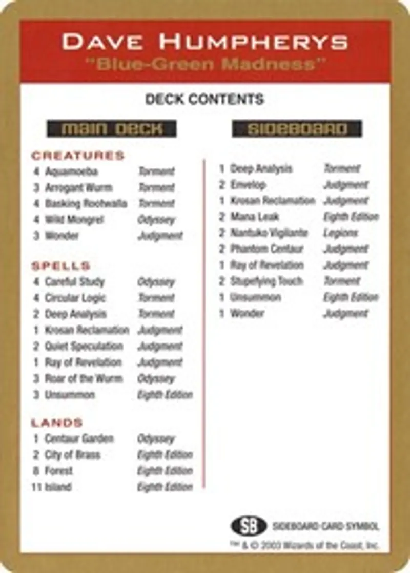 | Name | 2003 Dave Humpherys Decklist Card | ||