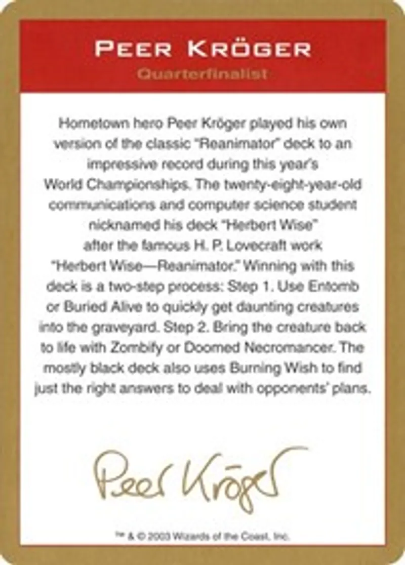 2003 Peer Kroger Biography Card is a Token in the set World Championship Decks.
