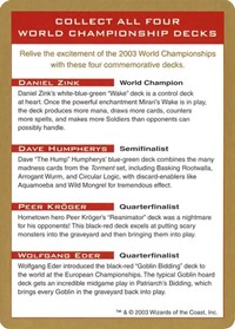 2003 World Championship Advertisement Card from World Championship Decks Details