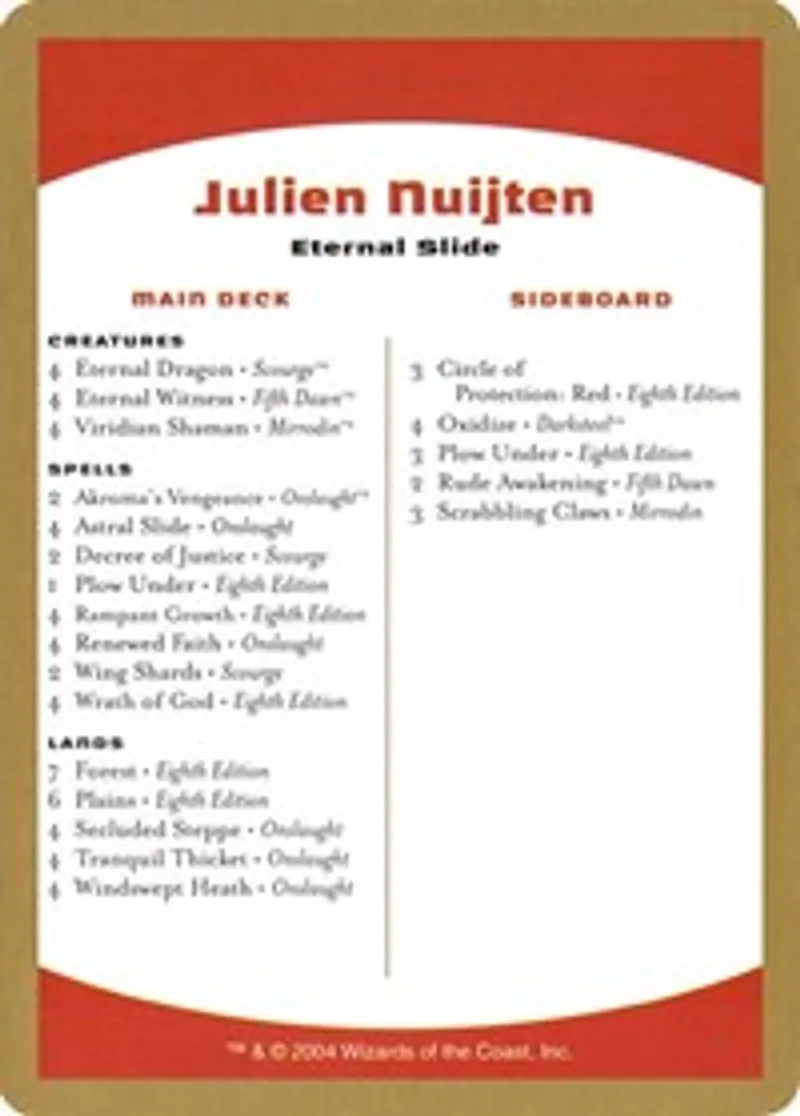 2004 Julien Nuijten Decklist Card from World Championship Decks Details