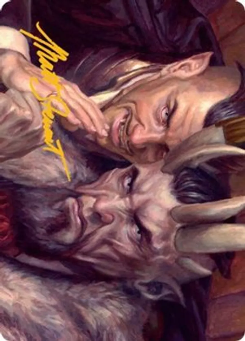 A Little Chat Art Card (Gold-Stamped Signature) is a Special in the set New Capenna Art Series.