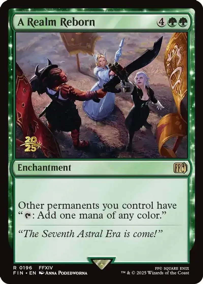Magic: the Gathering (mtg) Rare enchantment A Realm Reborn from Prerelease Cards (pPRE) last updated 2025-12-05 15:19:02