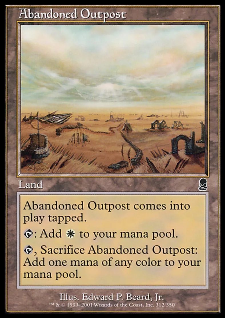 | Oracle Text | Abandoned Outpost enters the battlefield tapped. {{t}}: Add {{w}} to your mana pool. {{t}}, Sacrifice Abandoned Outpost: Add one mana of any color to your mana pool. | ||
