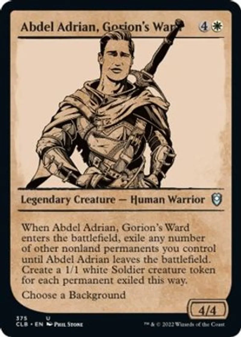 | Oracle Text | When Abdel Adrian, Gorion's Ward enters the battlefield, exile any number of other nonland permanents you control until Abel Adrian leaves the battlefield. Create a 1/1 white Soldier creature token tor each permanent exiled this wav.