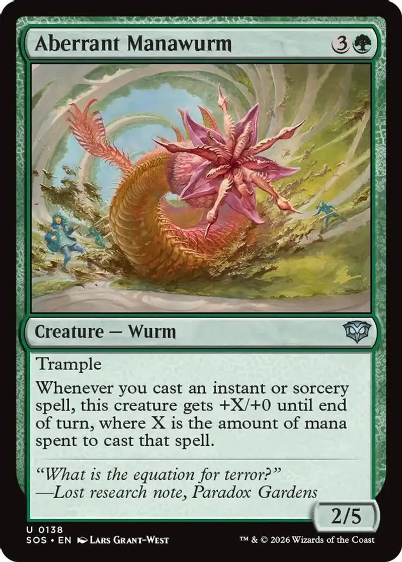 Magic: the Gathering (mtg) Uncommon creature — wurm Aberrant Manawurm from Secrets of Strixhaven (SOS) last updated 2026-04-17 15:30:09