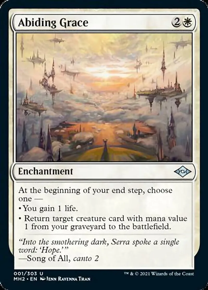 Magic: the Gathering (mtg) uncommon Enchantment Abiding Grace from Modern Horizons 2 (mh2) last updated 2026-02-21 16:37:32