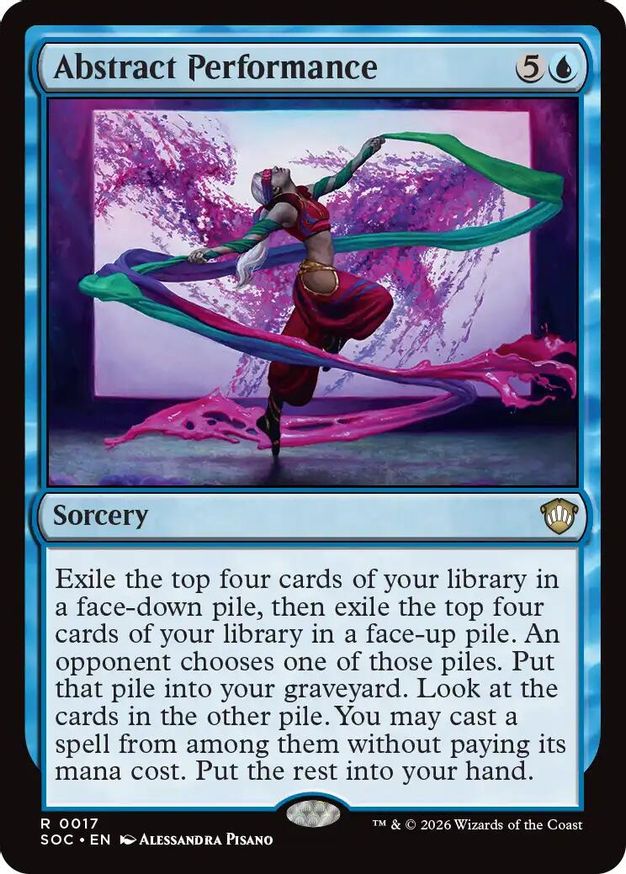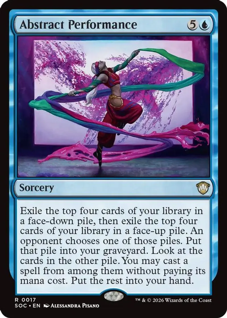 Magic: the Gathering (mtg) Rare sorcery Abstract Performance from Commander: Secrets of Strixhaven (SOC) last updated 2026-04-20 14:58:39