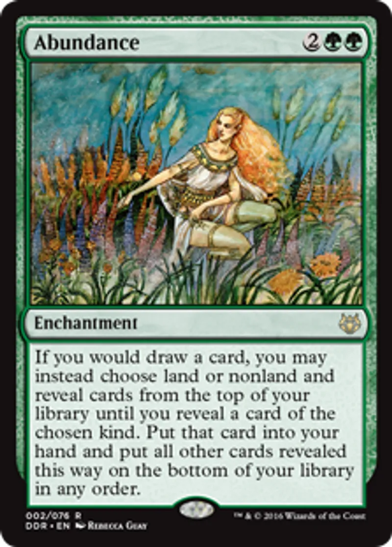 Abundance is a Rare in the set Duel Decks: Nissa vs. Ob Nixilis.