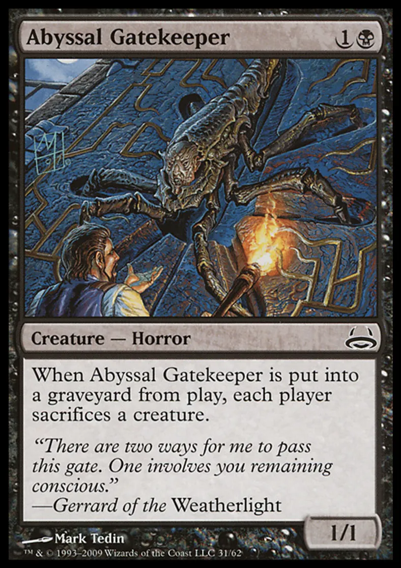 | Oracle Text | When Abyssal Gatekeeper dies, each player sacrifices a creature. | ||