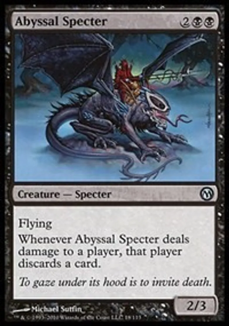 Whenever Abyssal Specter deals damage to a player, that player discards a card from his or her hand. | ||