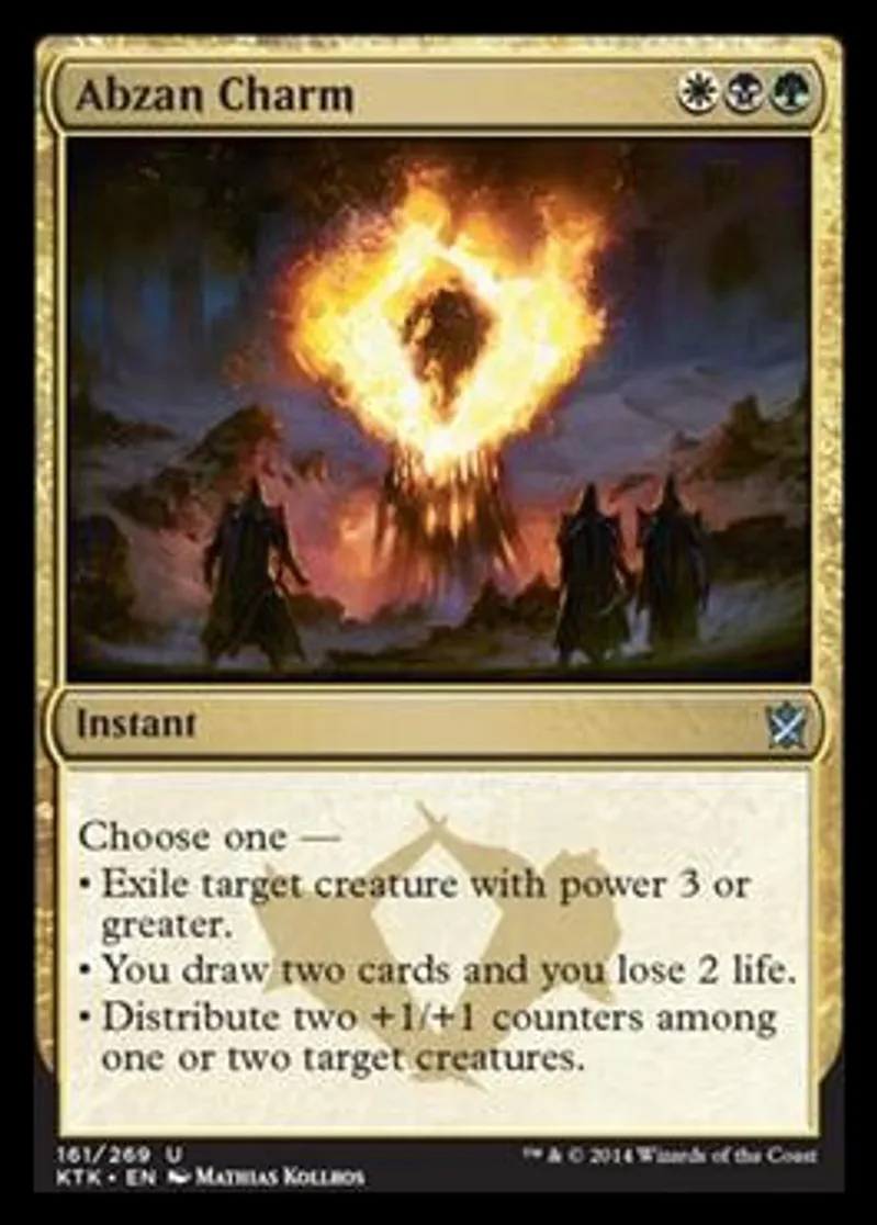Magic: the Gathering (mtg) Uncommon Instant Abzan Charm from Khans of Tarkir (KTK) last updated 2026-02-21 17:17:33