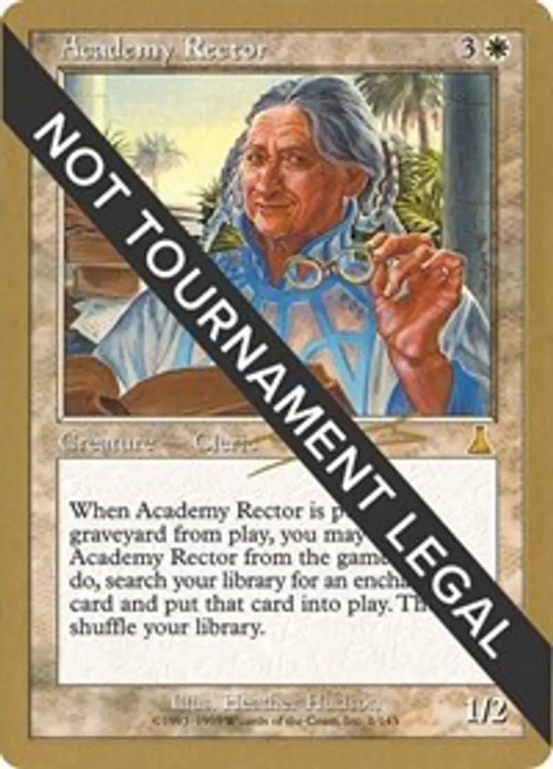 | Oracle Text | When Academy Rector is put into a graveyard from play, you may remove Academy Rector from the game. If you do, search your library for an enchantment card and put that card into play. Then shuffle your library. | ||