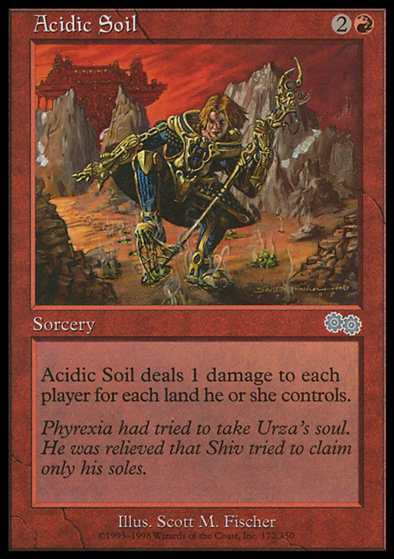 | Oracle Text | Acidic Soil deals damage to each player equal to the number of lands he or she controls. | ||