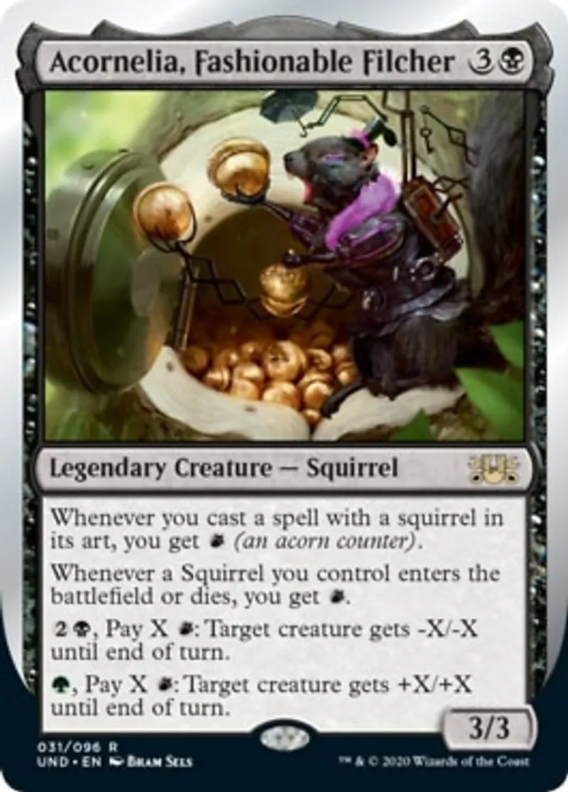 Magic: the Gathering (mtg) rare Legendary Creature — Squirrel Acornelia, Fashionable Filcher from Unsanctioned (und) last updated 2026-02-24 15:26:36