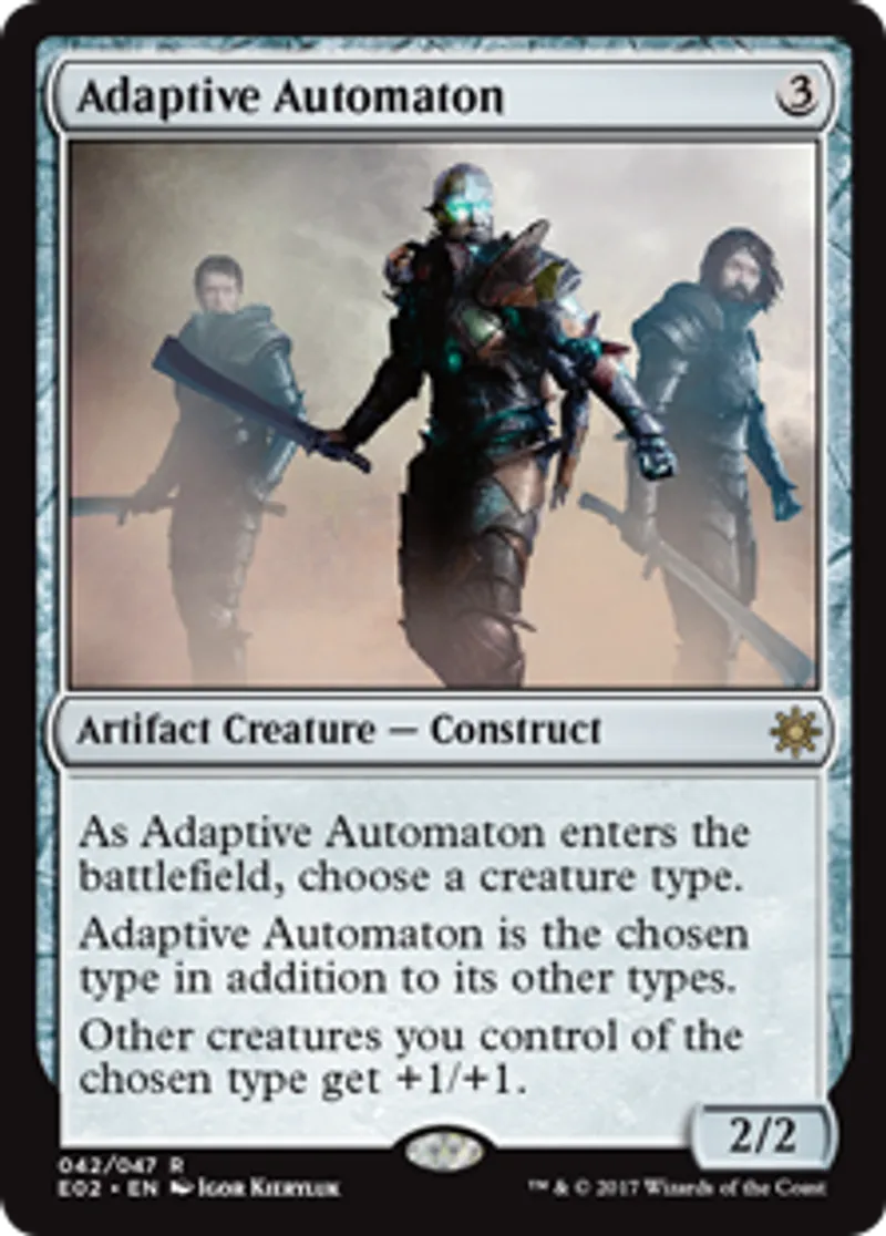 | Oracle Text | As Adaptive Automaton enters the battlefield, choose a creature type. Adaptive Automaton is the chosen type in addition to its other types. Other creatures you control of the chosen type get +1/+1. | ||