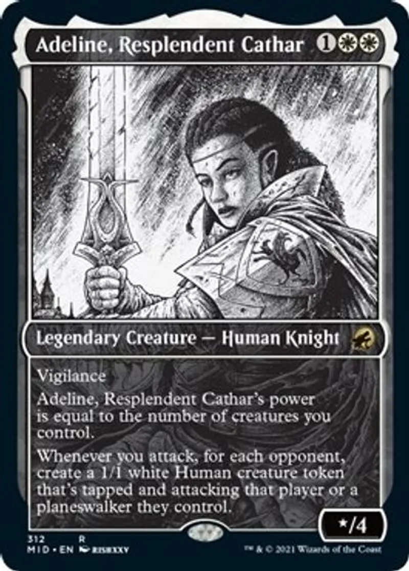 Magic: the Gathering (mtg) Rare Legendary Creature - Human Knight Adeline, Resplendent Cathar from Innistrad: Midnight Hunt (MID) last updated 2026-02-24 15:05:31