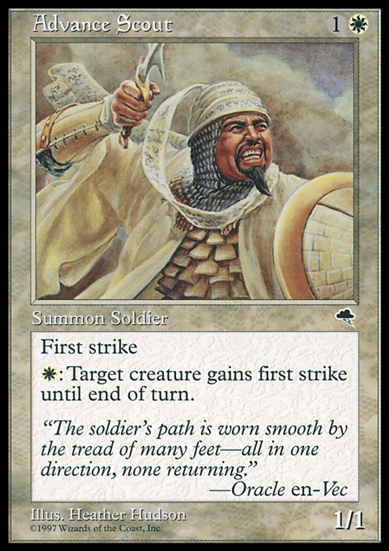 Magic: the Gathering (mtg) Common Creature - Human Soldier Scout Advance Scout from Tempest (TMP) last updated 2026-02-21 17:31:32
