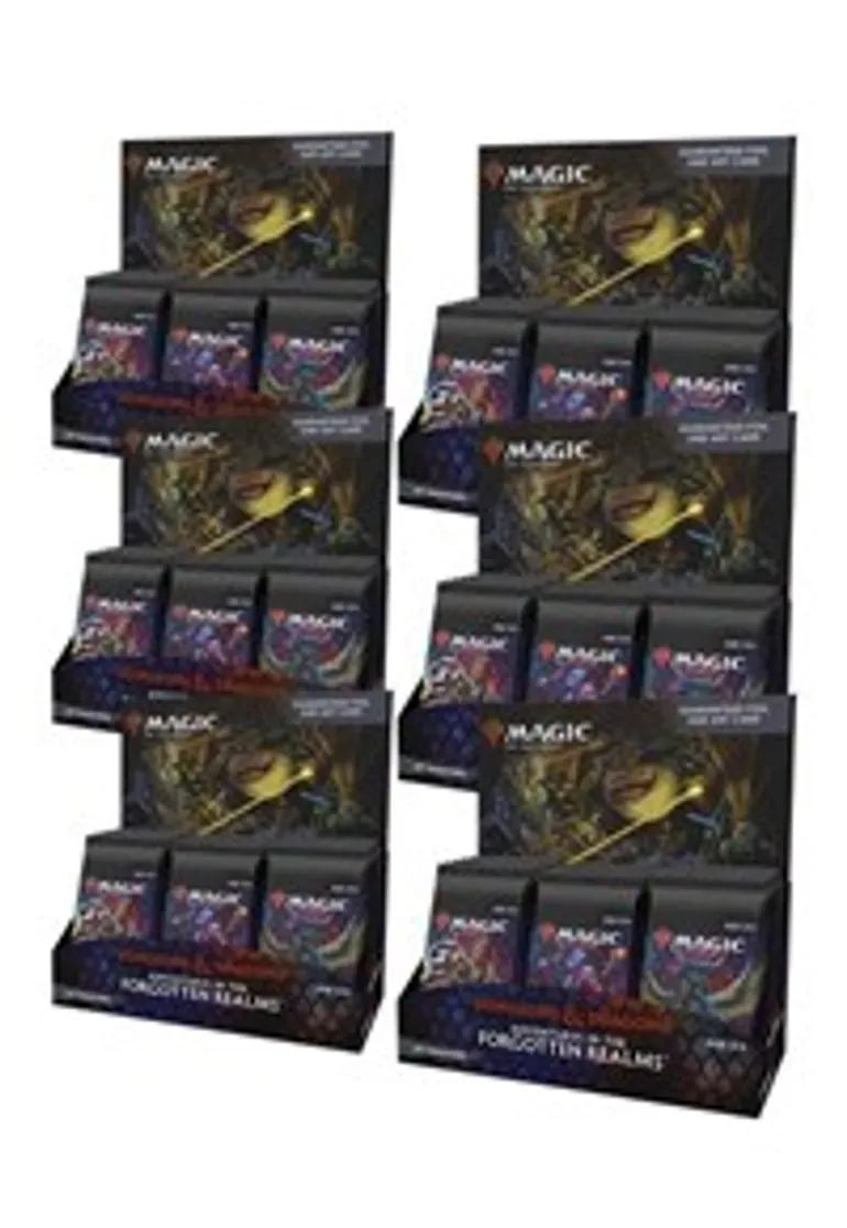 | Flavor Text | <strong>KEY PRODUCT FEATURES:</strong> <br>• 6 Adventures in the Forgotten Realms (AFR) Set Booster Displays <br>• Best MTG booster for opening packs just for fun <br>• At least 1 Showcase card in every pack <br>• D&D Monster Stat Block on Art Card in 33% of packs <br>• Total of 12 Magic: The Gathering cards per pack <br>• Beloved Dungeons & Dragons heroes and monsters have ventured into Magic for the ultimate crossover! <br><br>DESCRIPTION:</strong> <br>The <em>Adventures in the Forgotten Realms</em> Set Booster Box contains 30 <em>Adventures in the Forgotten Realms</em> Set Boosters. Each Set Booster contains 12 Magic cards, 1 Art Card (includes a D&D monster stat block on the back in 33% of packs), and 1 token, ad card, or special card from Magic's history (a card from "The List"). Each pack contains a combination of 1–4 Rares or Mythic Rares, 7–10 Uncommons and Commons (maximum of 7 may be Uncommon), and 1 Land card. One non–Art Card and non–Land card of any rarity is a traditional foil. A foil-stamped Signature Art Card replaces the Art Card in 5% of Set Boosters. A card from The List replaces the token or ad card in 25% of Set Boosters. | ||