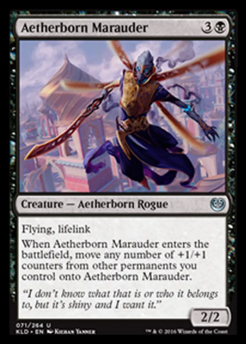 | Oracle Text | Flying, lifelink When Aetherborn Marauder enters the battlefield, move any number of +1/+1 counters from other permanents you control onto Aetherborn Marauder. | ||
