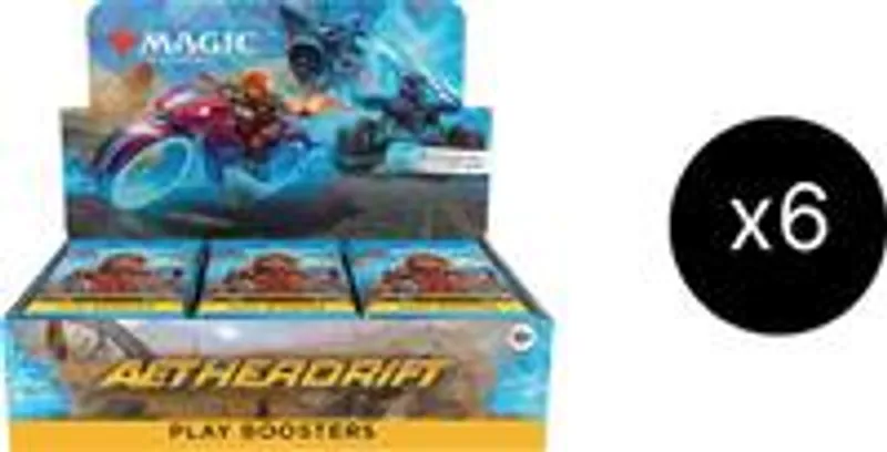 | Flavor Text | Start your engines for a high-octane death race across the Multiverse! Swerve through three planes of mayhem, dodging dangerous obstacles and rival racers along the way. Crew up unique vehicles and mounts as you discover which racing team best suits your style, then hit max speed to claim the gold. <br> Play Boosters are one of the best ways to play Magic with friends. Play Boosters are great for building powerful decks, fun to open, and are balanced for Limited play. Each Play Booster contains at least one shiny foil card. A full display of Play Boosters will get you off to the races! <br> Plus, each Play Booster Display contains a 2-card First Place Box Topper. <br> Contents: <br>• 6 Aetherdrift Play Booster Displays <br>• 30 Aetherdrift Play Boosters; each Play Booster contains 14 Magic: The Gathering cards <br>• 2-card First-Place Box Topper <br>• Each Play Booster may contain these cards: DFT 1–375; SPG 84–93. <br>• 1–4 cards of rarity Rare or higher (2: 26%; 3: 2%; 4: <1%) <br>• 3–5 Uncommon cards <br>• 6–9 Common cards <br>• 1 Land card. 1 card of any rarity is Traditional Foil <br>• Foil Mythic Borderless Graffiti Giants card in <1% of boosters. Traditional Foil Land replaces a Land in 20% of boosters. | ||
